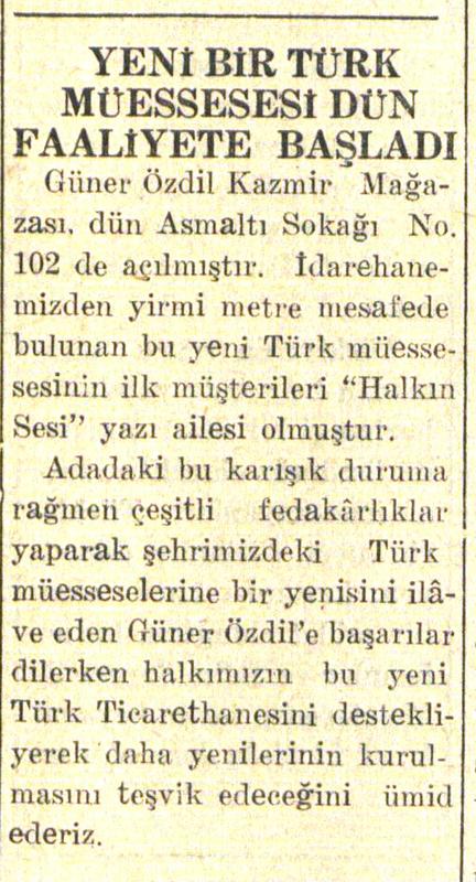 "Yeni Bir Türk Müessesesi Dün Faaliyete BaÅŸladı," Halkın Sesi, 21 January 1956, p. 1