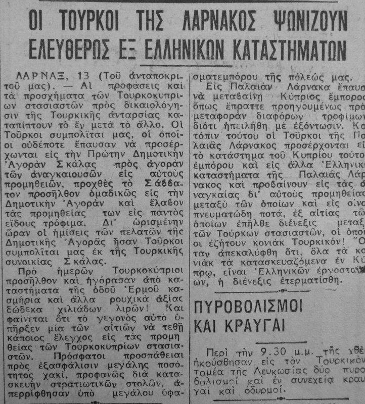 - N.C., “The Turks of Larnaca shop freely from the Greek stores,” Cyprus Critical History Archive: Reconsidering the culture of violence in Cyprus, 1955-64, accessed April 11, 2026, https://ccha-ahdr.info/items/show/789.